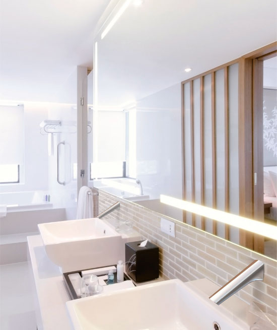 The intuitive, touch-free system incorporates smart sensors that detect the user and control the water flow of the faucets automatically. This will assist in keeping your bathroom clean and saves up to 70% of water consumption.